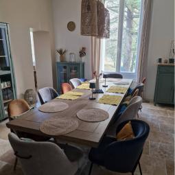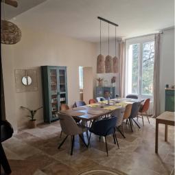 L'espace salle à manger, pour 12 personnes minimum, dans la pièce de vie de 54m²,