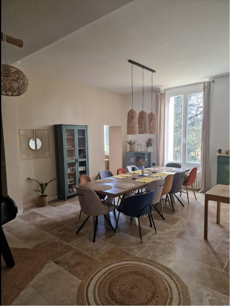 L'espace salle à manger, pour 12 personnes minimum, dans la pièce de vie de 54m²,